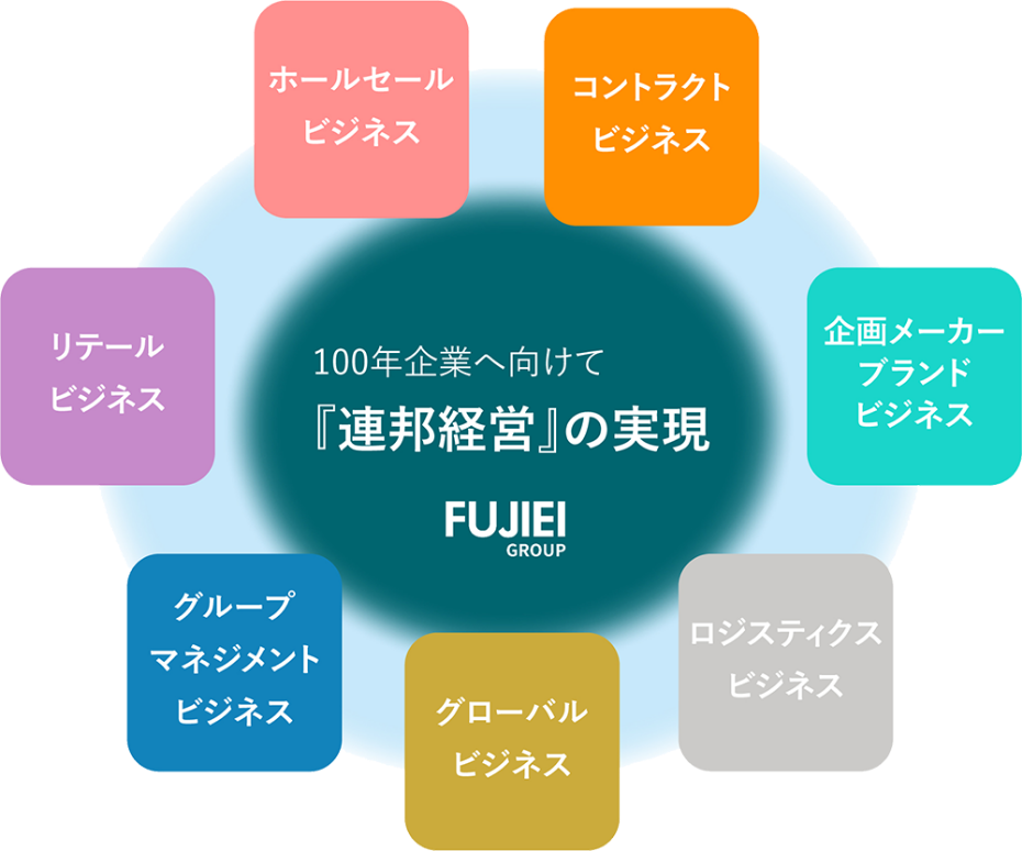 「生活者起点型マーケティングカンパニー」をビジョンに据え、すべてのビジネス領域と事業会社の強みを活かしながら、各社の自立を前提に、グループ全体が理念のもとにつながりながら、さらに成長を図る「連邦経営」を目指しています。